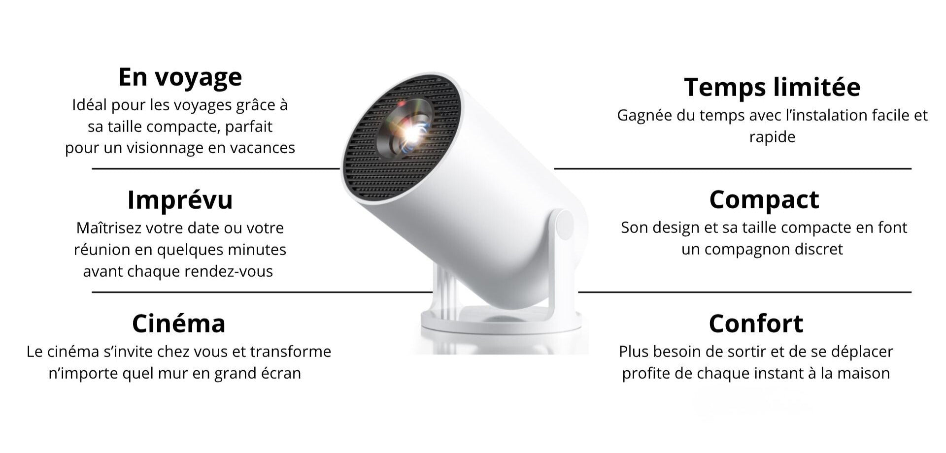 Petit, belle qualité de projection, facile à utiliser, en bluetooth sur le wifi ou filaire en 4G.